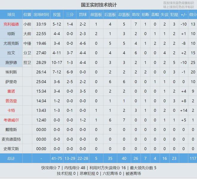 斯玛特防守端可圈可点,不仅贡献4记抢断,而且多次飞扑救球。第四节后半段,两队逐渐换上纯替补。末节最后8.4秒,克内克特三分飙进,湖人追至116-116平。1.4秒国王前场底线发球,裁判吹了湖人防守犯规,比赛仅剩0.8秒。